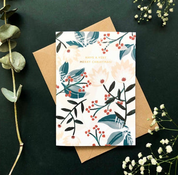 Chloe Hall Illustrations, based in Leicester, creates cards from loose line watercolours inspired by nature. For some added luxury this Christmas season, this beautiful floral illustration is also foiled. This card is printed onto textured 250gsm card and accompanied with a 100% recycled kraft envelope and packaged in a biodegradable and compostable clear corn starch wallet.