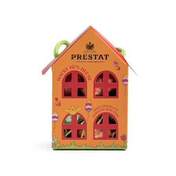 Celebrate Easter with the Wackiest of Hen Houses, filled with delicious milk chocolate ganache eggs, ready to be gathered!