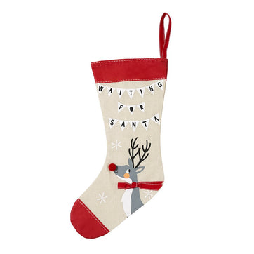 Ho Ho Ho! It’s that time of the year again to put your stocking out by the fireplace for Santa’s arrival on Christmas eve. Our brand new festive stocking features our lovely reindeer design under his sweet ‘Waiting for Santa’ bunting. A perfect gift for any little loved ones. There’s even a label on the reverse to personalise your stocking! Haven’t got a chimney?