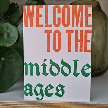 The hefty Tudor Black font represents the age and wisdom of those entering the prime of their life!