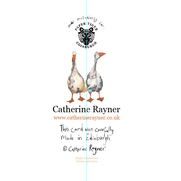 This lovely anniversary card features loved up Wendy and Grace, as beautifully illustrated by Edinburgh artist Catherine Rayner. It has been printed in Edinburgh on sturdy watercolour card, is left blank inside for your own message - and comes complete with an envelope ready for sending.
