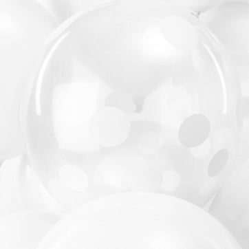 White Dots Pack of 12 Balloons made of natural rubber latex. They are 30cm in size. This mix of white dot balloons are perfect for adding a touch of sophistication to your party.
