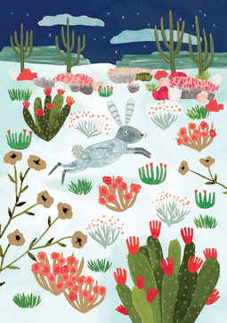 This is a beautiful gold foiled Christmas card featuring cute wild rabbit and cactus design. This card has been left blank inside for a personal message and it comes with a matching envelope.