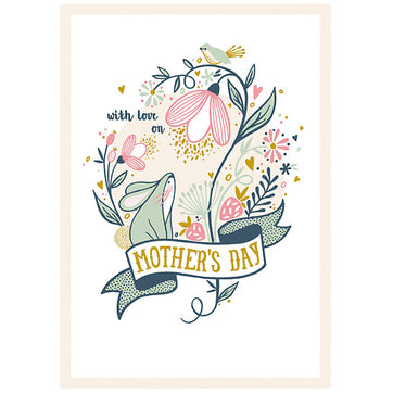 A Mother's Day card with flowers and a bunny to give with love on this special day. This card is blank inside.
