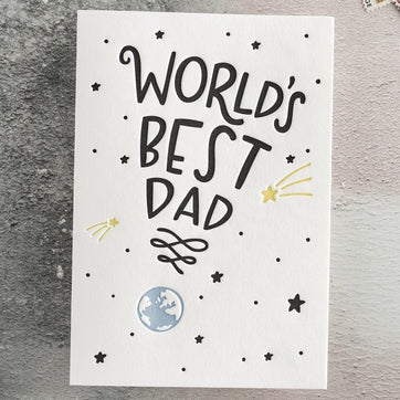 Give your dad the title he deserves this Father's day: World's Best Dad. This letterpress card is blank inside and comes with a kraft brown envelope.