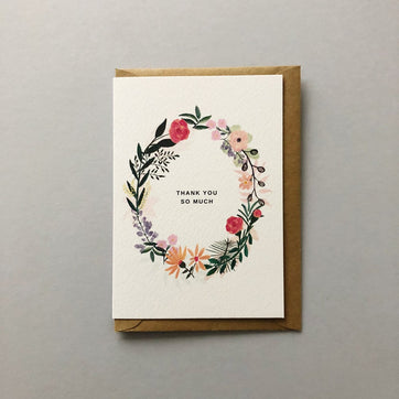 Chloe Hall Illustrations, based in Leicester, creates cards from loose line watercolours inspired by nature. Say thank you with this lovely floral wreath card. This card is printed onto textured 250gsm card and accompanied with a 100% recycled kraft envelope and packaged in a biodegradable and compostable clear corn starch wallet.