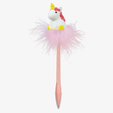 Add a magical flair to your notes with this cute unicorn pen, featuring a tap-activated light and pink fluff! The tip is 0.7mm and writes with blue ink.