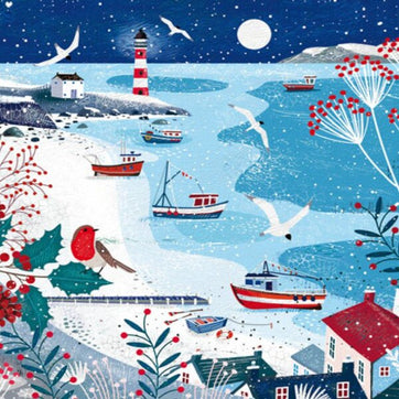 With a lovely illustration of a wintery coastal harbour, this pack of Christmas cards are perfect to spread some seasonal joy to your loved ones.