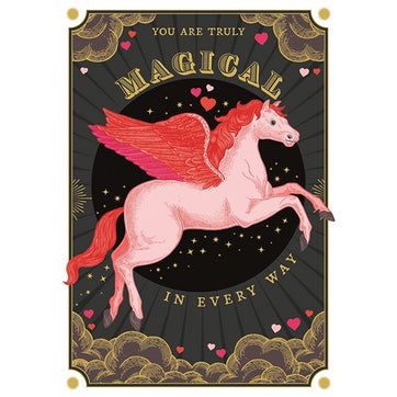 You are truly magical. This pink unicorn filled gold foil embossed Valentine's card is printed on 280gsm textured card and comes with a quality red envelope.