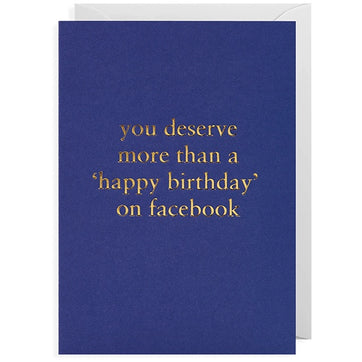 You Deserve More Than ‘Happy Birthday’ on Facebook. It is always better to say it with a card. The card is printed on Forest Friendly board and is blank inside.