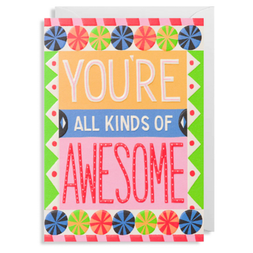 This is a funky, bold card featuring bright colours and eye-catching patterns making it perfect to celebrate.