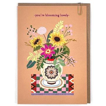 You're Blooming Lovely. This bright and floral foiled card is blank inside, printed on Forest Friendly card 300gsm card and comes with a quality Kraft brown envelope.