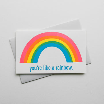 This sweet letterpress Valentine's Card reads 'you're like a rainbow' and features a bright and bold rainbow. A great way to tell someone you love how much they improve your day!
