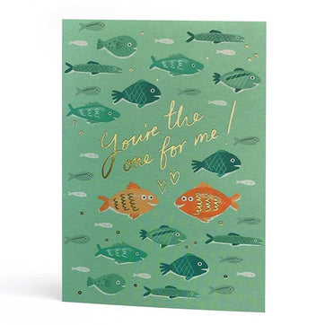 You're the one for me. Let someone special know this Valentine's day that their a catch. This gold foiled Valentine's card is printed on forest friendly card and comes with a 100% recycled white envelope.
