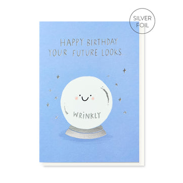 This cheeky birthday card features an illustration of a smiling crystal ball and reads 'happy birthday, your future looks wrinkly' - they'll never see it coming!